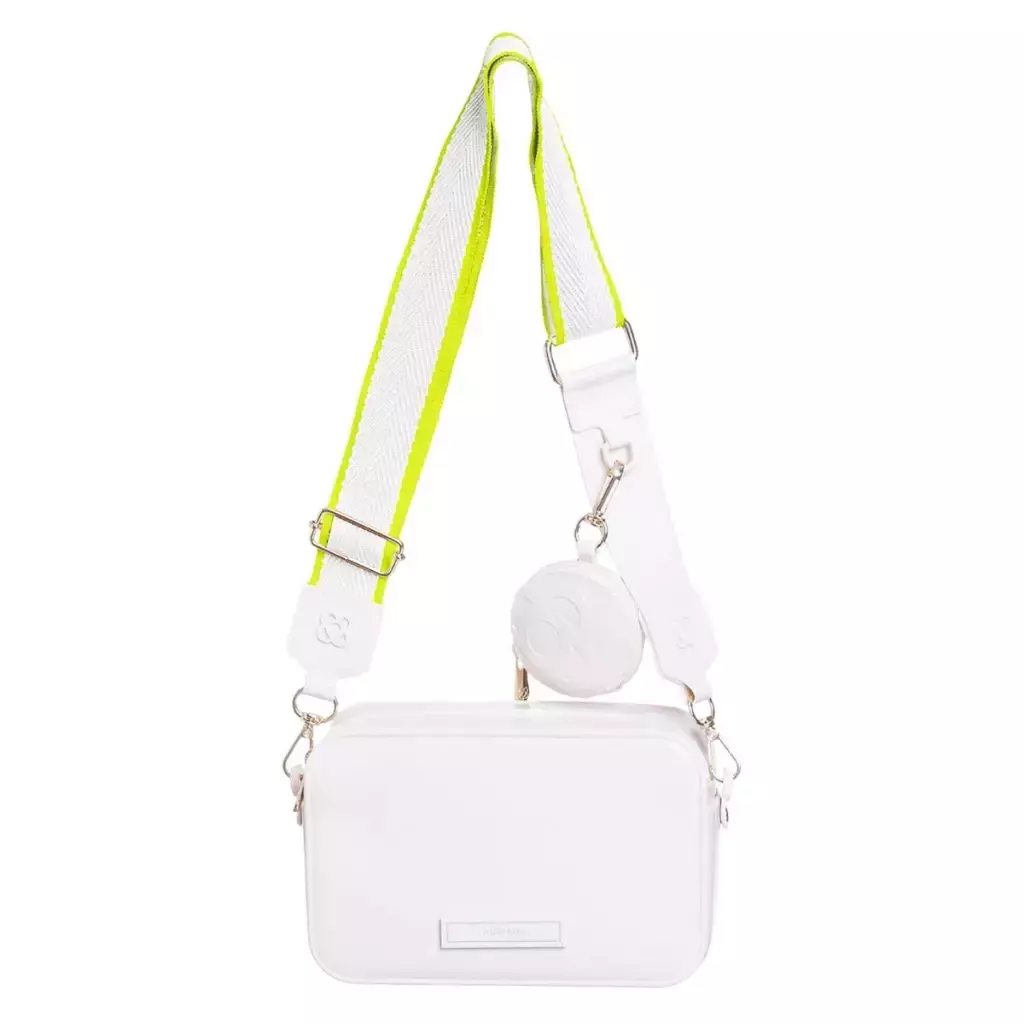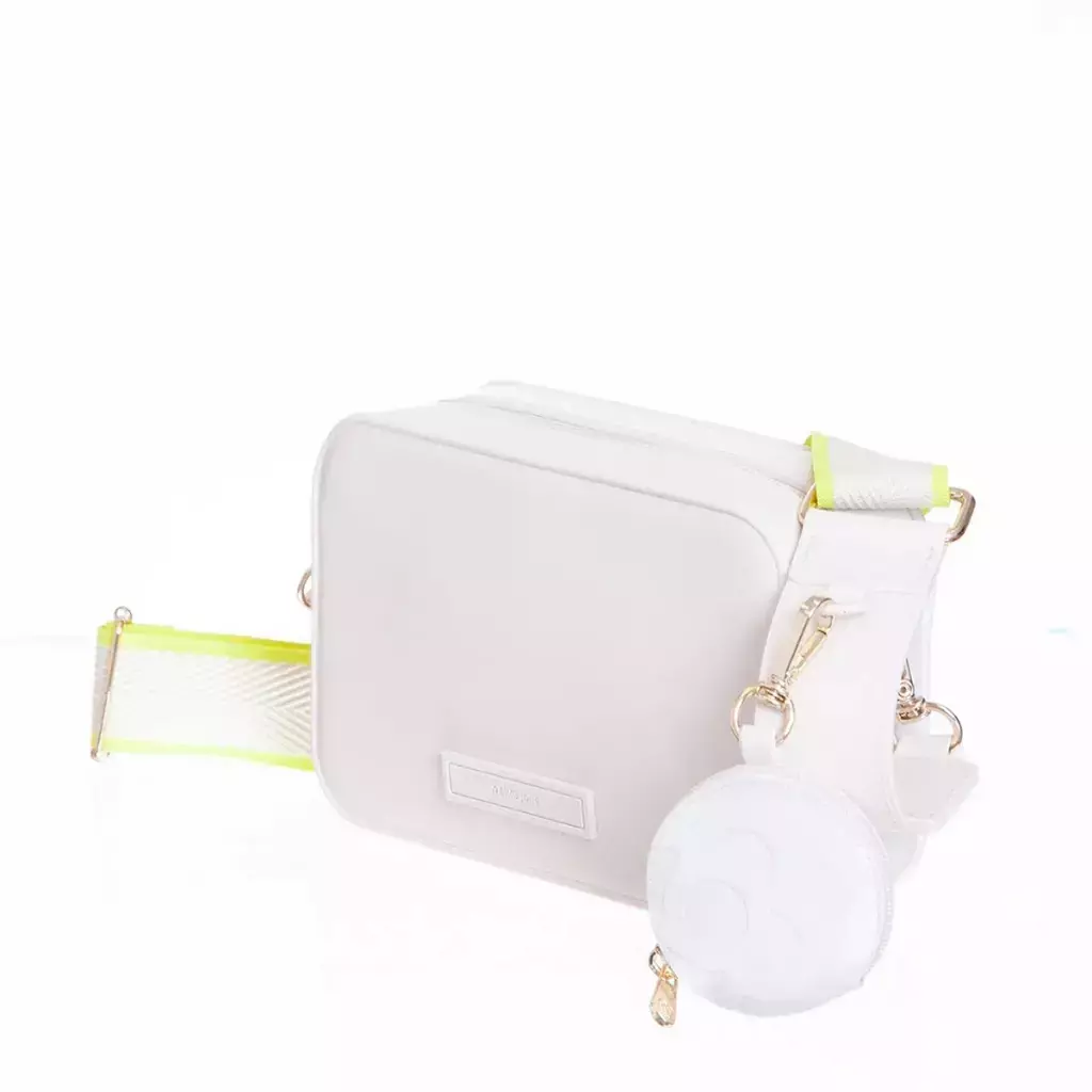 O acabamento em tons de Snow e Lemon adiciona frescor e modernidade ao visual, tornando essa bolsa um item indispensável para quem gosta de acessórios funcionais e cheios de estilo. Seu espaço interno amplo garante que você possa carregar tudo o que precisa, enquanto o material facilita a limpeza e a durabilidade.