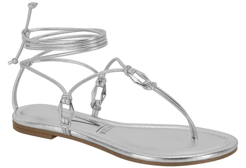 Confeccionada com acabamento em prata reluzente, suas tiras delicadas trazem charme e feminilidade, enquanto o salto médio oferece a altura ideal para longas horas de uso sem abrir mão do conforto. O fechamento ajustável garante um ajuste seguro e perfeito aos pés.