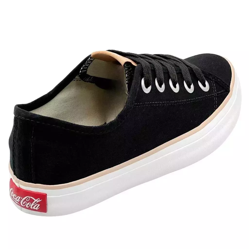 Design Elegante: Com sua cor preta clássica e detalhes sutis da marca Coca-Cola, este tênis combina facilmente com uma variedade de roupas, desde jeans até vestidos casuais.